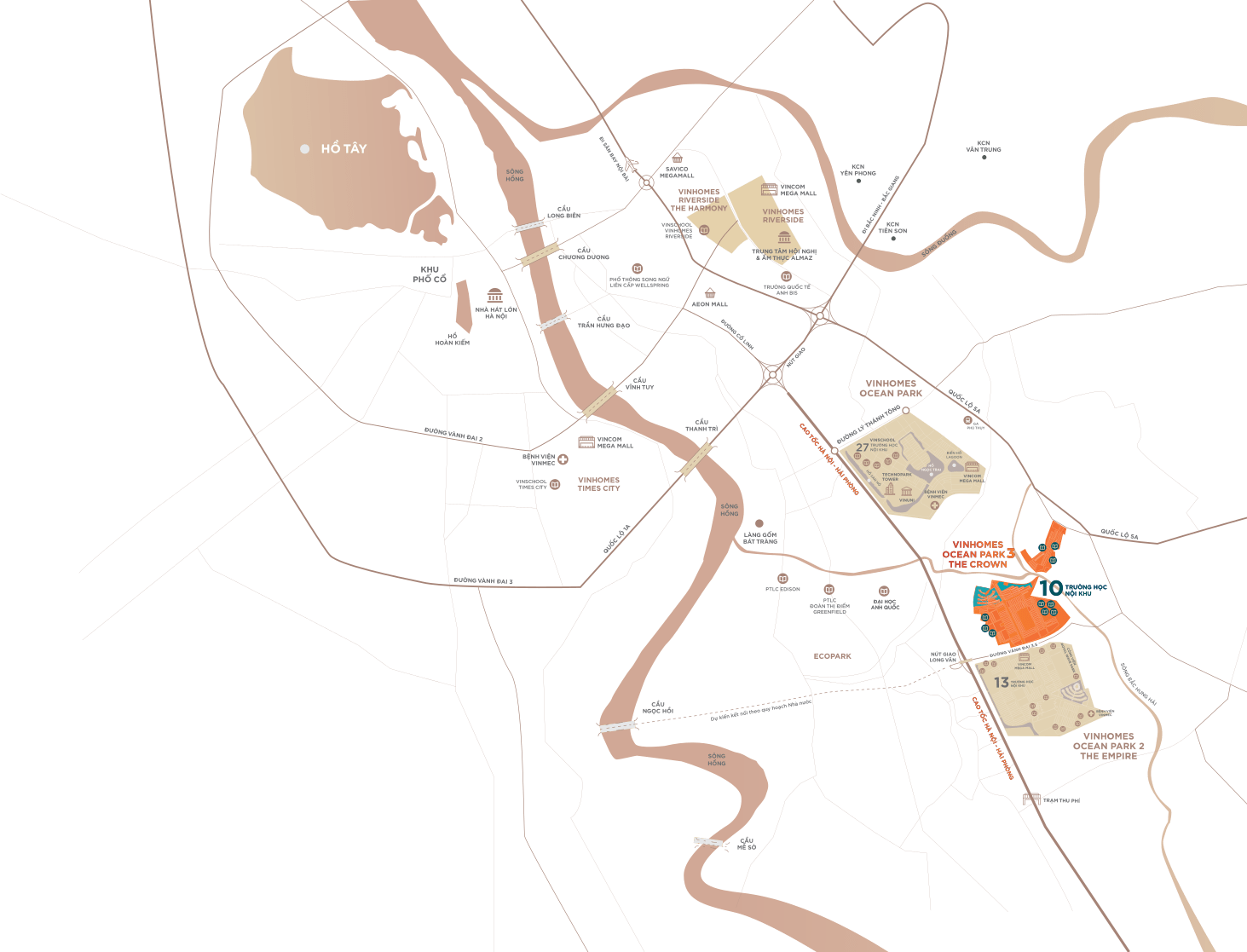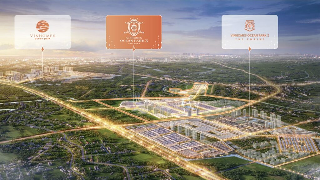 Vinhomes Ocean Park 3 The Crown tọa lạc trên địa phận 2 huyện Văn Giang & Văn Lâm, tỉnh Hưng Yên. Dự án là mảnh ghép cuối cùng của tổng thể “siêu đô thị biển” Vinhomes Ocean Park rộng lên tới hơn 1200 ha với 3 giai đoạn phát triển (Giai đoạn 1 Vinhomes Ocean Park Gia Lâm, giai đoạn 2 Vinhomes Ocean Park – The Empire, giai đoạn 3 Vinhomes Ocean Park – The Crown).